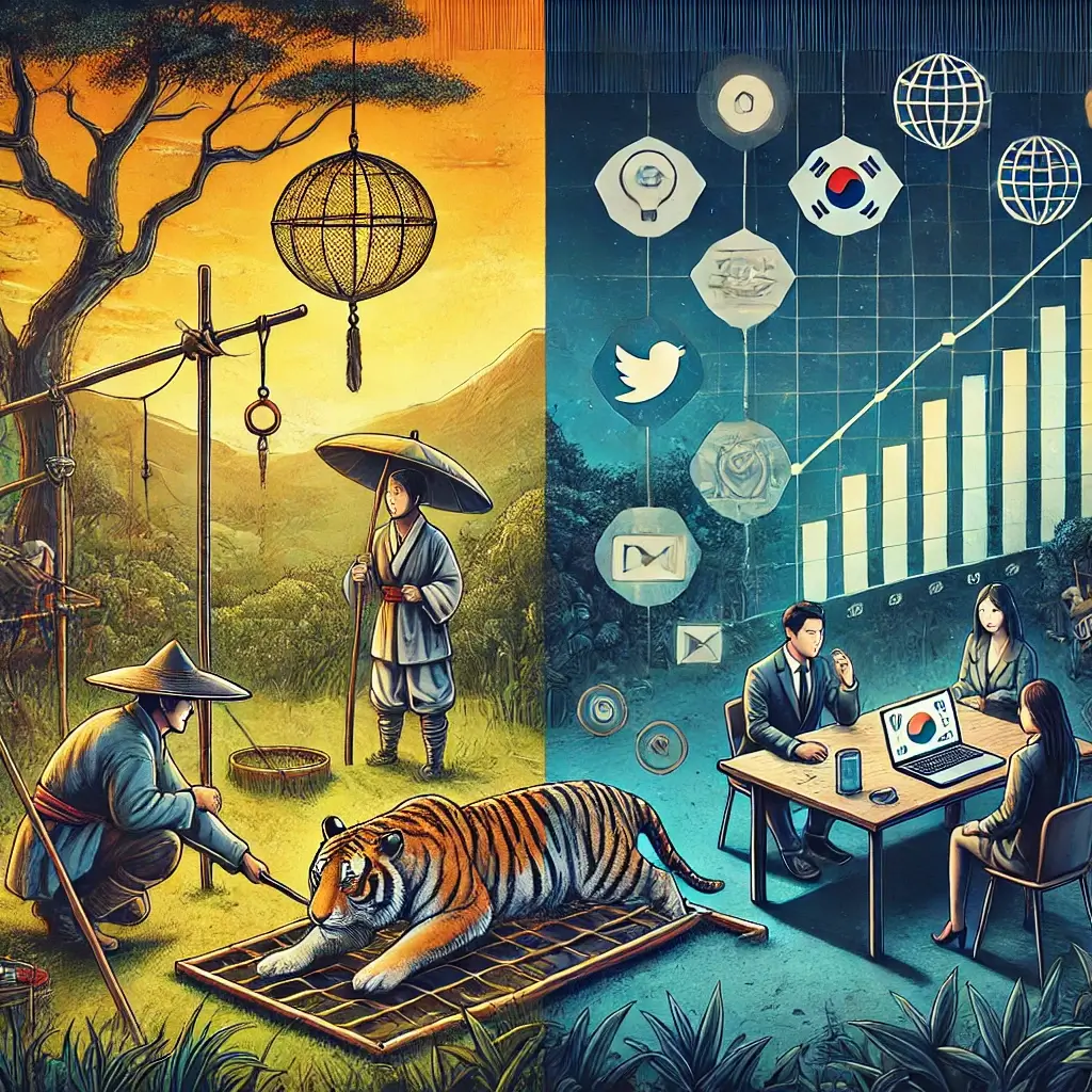 بينما كنت غارقًا في تفاصيل أحد المسلسلات الكورية، لفتت انتباهي جملة ألقاها أحد الممثلين: “سنطبق تكتيك الهوبوجين”. ما هي هذه الكلمة الغريبة؟ بسرعة ظهرت على الشاشة توضيحات بأنها طريقة تقليدية لصيد النمور. فكرة بسيطة، لكنها عميقة. تساءلت في نفسي، هل يمكن لهذه الاستراتيجية القديمة أن تجد مكانًا لها في عالمنا الرقمي الحديث؟ تساءلت أكثر، ماذا لو استخدمنا نفس التكتيك لصنع استراتيجية تسويق رقمي مبتكرة وفعالة؟ هل سننجح في اصطياد اهتمام الجمهور كما كانوا يصطادون النمور؟